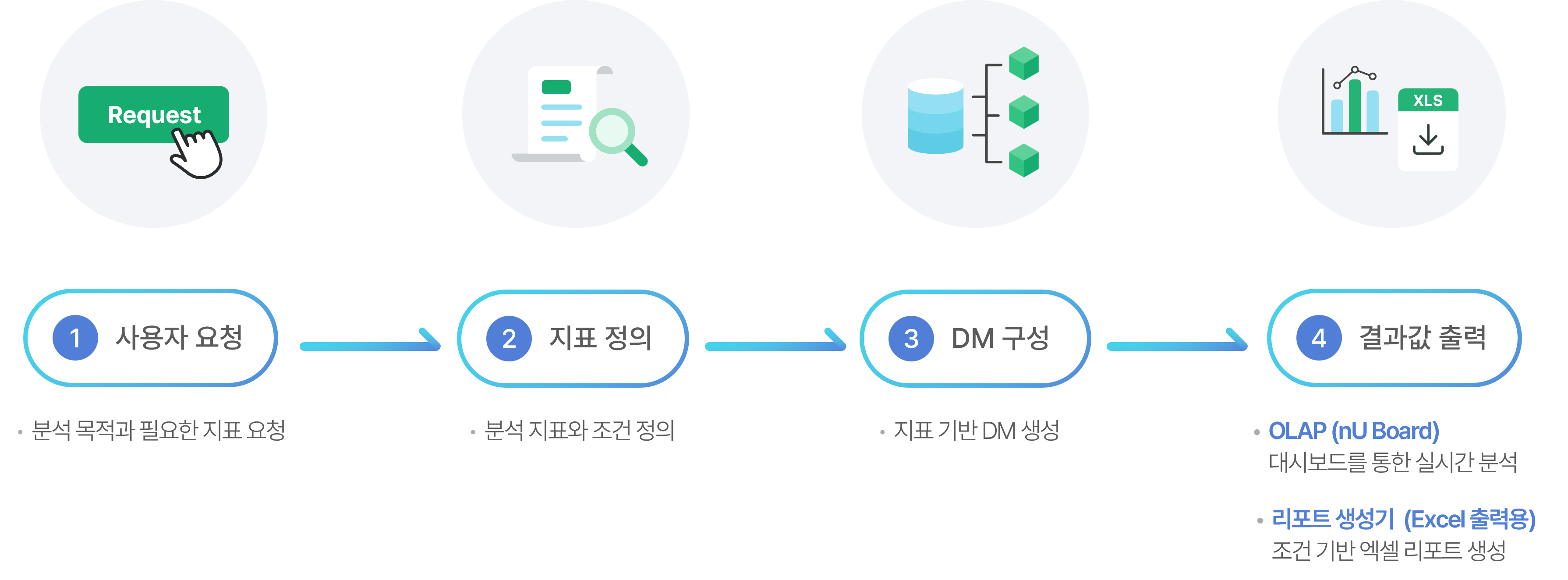 - 요청 처리 시 입력한 처리내역 집계를 통해 처리유형별 비율 및 처리 시간 확인 가능